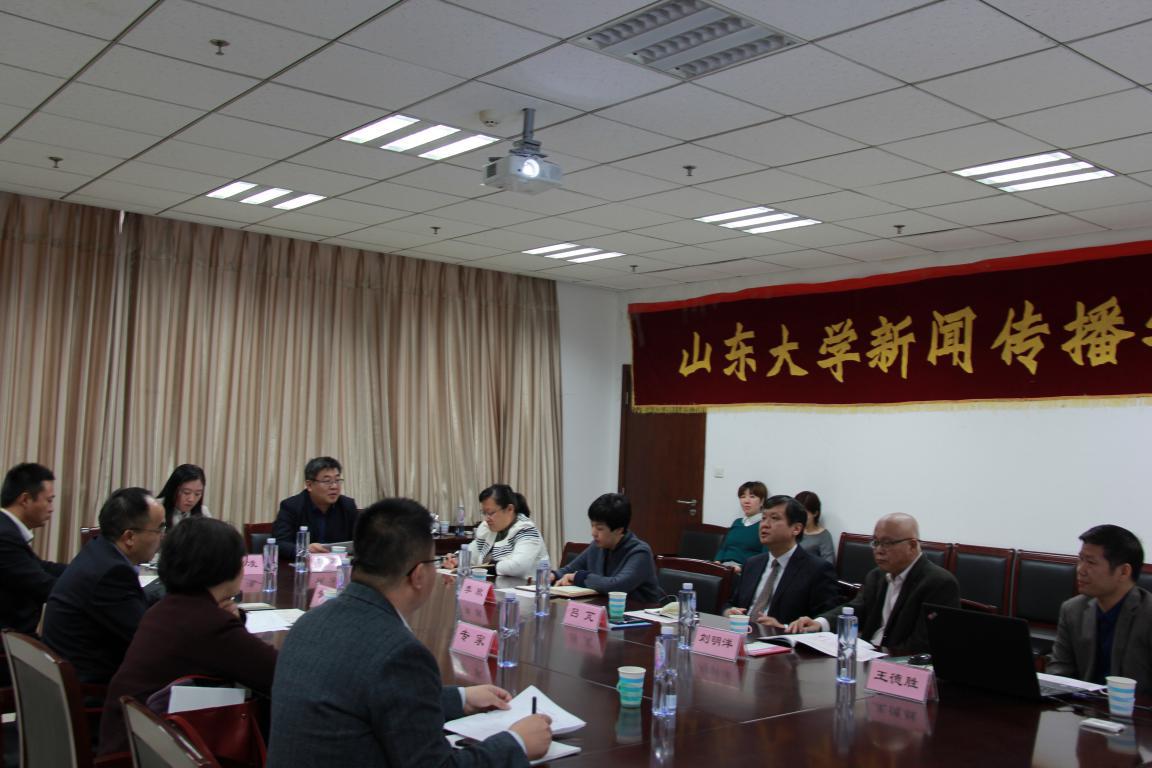 王书记在汇报中阐明了九五之尊电子游戏网址大全新闻传播学院坚持以马克思主义新闻观为指导,以“部校共建”为契机,以新闻传播教育创新为驱动,根植于百年山大,厚植于齐鲁大地,培养传播优秀文化和运用新兴媒体的双内核复合型人才为办学定位;在政策要求和人才需求的背景下使学生具备坚定地政治信仰,具有复合型的知识结构和全面的专业技能,同时具备国际视野、深厚的人文素养和创新能力。学院构建了多层次多途径的质量保障体系,课程体系方面科学合理并支持特色教材开发、改革教学方法、“文学生活馆”首开多校区课堂共享模式,以及通过“第二课堂”和“成建制”的实习模式提高学生的实践能力。