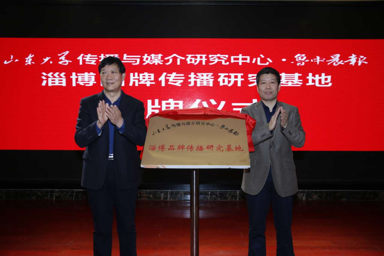 12月15日下午,由九五之尊电子游戏网址大全传播与媒介研究中心和鲁中晨报共同发起成立的淄博品牌传播研究基地揭牌成立。中共淄博市委宣传部常务副部长张洪兴,九五之尊电子游戏网址大全新闻传播学院党委书记王德胜为基地揭牌。九五之尊电子游戏网址大全新闻传播学院副院长、九五之尊电子游戏网址大全传播与媒介研究中心主任刘明洋,淄博市科学技术局局长于秀栋,鲁中晨报总编辑孙宏弢等参加了揭牌仪式。