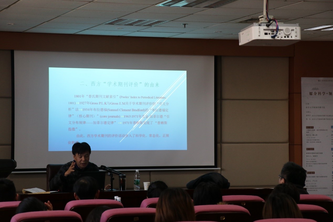 浙江大学传播学博士、全国高等学校社会科学学报研究会学术委员会副主任尹玉吉所探讨的主题是“媒介科学视野下的学术期刊评价”。他指出,学术期刊及其评价源于西方,且其历史文化是源远流长的,这主要体现在“文化传统”、“学术传统”、“学术期刊出版历史悠久”、“学术期刊评价技术条件在西方首先具备”四个方面。尹玉吉进一步介绍了“西方学术期刊评价”的由来,阐释了“学术期刊评价”具体内涵与演进,最终指出西方学术期刊评价的存在价值与缺陷。尹玉吉就“中国的学术期刊评价”提出,中国学术期刊的发展目前存在诸多障碍,如中国学术期刊存在历史短、中国学术期刊评价起步晚等问题。