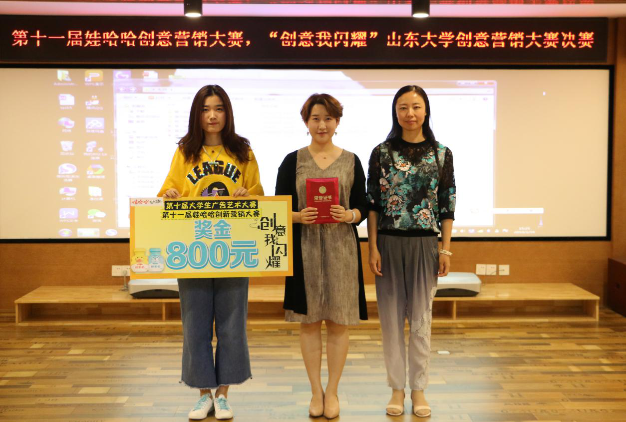 娃哈哈集团品牌公关部鲁中市场拓展总监曲维捷评价说:“娃哈哈和九五之尊电子游戏网址大全一直有着良好的合作,大赛举办第一届时就是臧丽娜老师带领学生夺取了一等奖。今天大家展示的作品都非常优秀,方案的可操作性很强。”