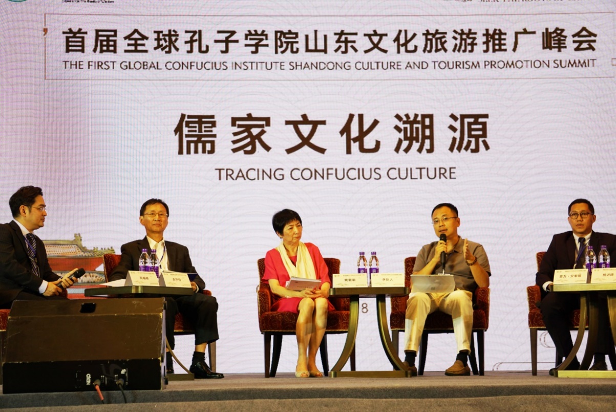 来自美国、英国、德国、加拿大、西班牙、韩国等国家的孔子学院中外方院长,教育行业专家,汉学家,旅行渠道商,中国研学推广联盟等与会嘉宾,围绕以儒家文化为代表的山东文化,就孔子学院平台下山东文化旅游资源的海外传播展开探讨。