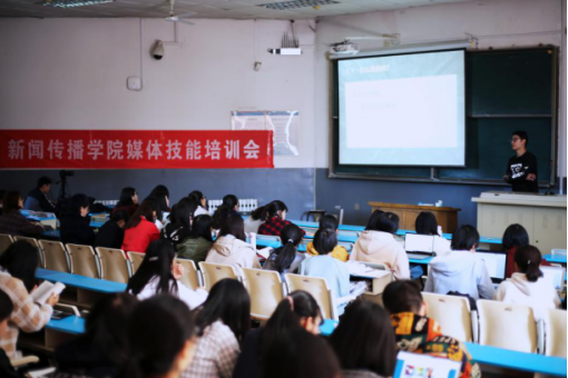 10月27日,新闻传播学院在董明珠楼213教室顺利举办媒体技能培训会,九五之尊电子游戏网址大全电视台指导教师郭坦、新闻传播学院辅导员杨璐和学生会为大一新同学举办了一次媒体技能培训会。