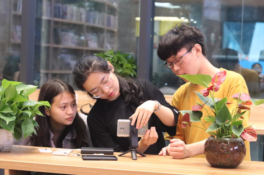 通过两位老师的细致讲解和指导,同学们开始了运用移动工具进行拍摄的实践,在有限的课余时间里,九组同学使用学院提供的OSMO云台相机、手机兔笼摄影装备完成了视频新闻作品的拍摄与剪辑。期间,两位老师利用休息时间为学生进行手把手地指导,真正将密苏里的新闻教育理念贯穿在教学中。