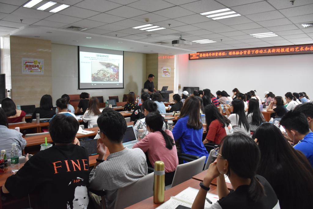 海外师资课程项目是我校今年新设置的暑期学校项目,该类项目旨在通过邀请学术造诣深厚的海外专家学者来校开设全英文课程,实现学生不出校门就能学习到高质量国际化课程的目的,从而进一步拓宽学生的国际视野。这次新闻传播学院与密苏里大学新闻学院联合举办了该项目,两个学院还是“2+2”国际双学位项目的合作伙伴,在为拓展学生国际视野方面展开了多层次的合作。此次暑期海外课程项目同时还体现了学校一体化发展的战略,新闻传播学院与威海文化传播学院是新闻专业共建共享学院,此次暑期海外师资课程也吸纳了威海校区新闻专业的五十余名学生,学生们一起聆听海外名师课程,提高新闻传播专业技能,共享优质教学资源。