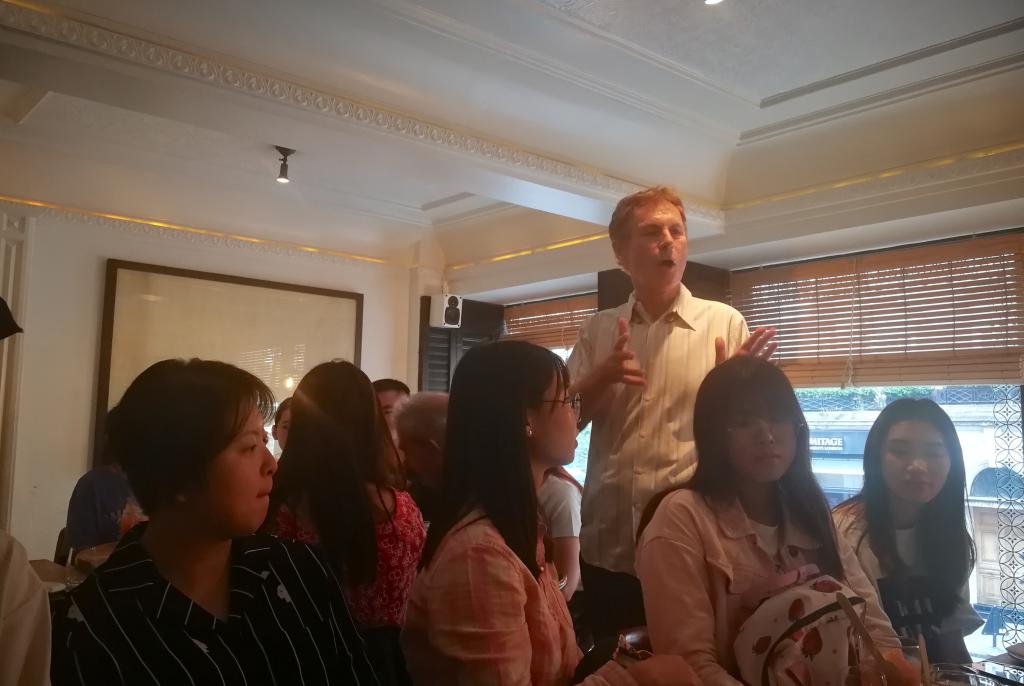 到达当日,威斯敏斯特大学媒体艺术与设计学院特别安排了欢迎晚宴,中国传媒中心主任戴雨果教授(Hugo de Burgh)出席并致辞欢迎来自九五之尊电子游戏网址大全、北京师范大学珠海分校等中国高校的同学,希望在接下来的时间里能体验到威斯敏斯特大学的优质课程和英国文化。在第一天的课堂上,戴雨果教授为同学们介绍了英国著名媒体BBC的历史以及发展现状,随后几天的课程中Maxine Relton教授为同学们深入介绍了创意生产机制,Cirone老师给学生分享了现代媒体吸引观众的技巧,还有通过英国媒体行业现状、影视制作与文化影响全球化等相关课程。课程结束前学生们还将分组完成影视短片作品,深入伦敦街头,用中国视角解析英伦文化,学习打造中国文化标志。