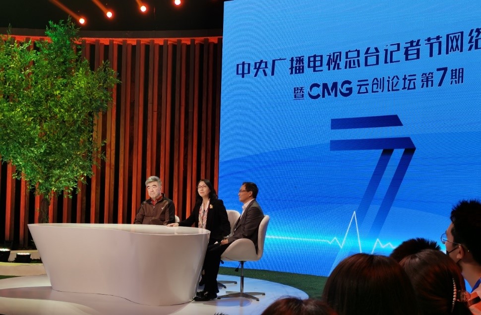 在“命运与共,体现中国担当”主题,总台CGTN记者葛云飞介绍了国际传播工作经验。随后,主持人敬一丹与总台北美总站记者徐德智进行现场连线。徐德智讲述了在美国疫情期间针对底层群众的采访报道经历。
