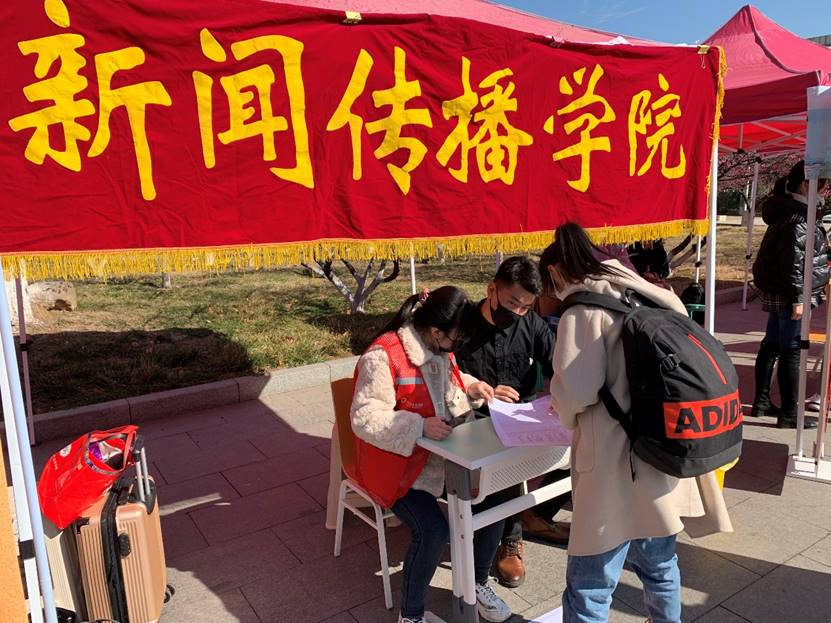 2月27日,新闻传播学院2021年春季学期学生返校工作全面展开,学院党委书记王德胜、常务副院长刘明洋一早赶赴现场进行工作指导,学院辅导员、班主任和机关工作人员共同迎接返校学生入校。