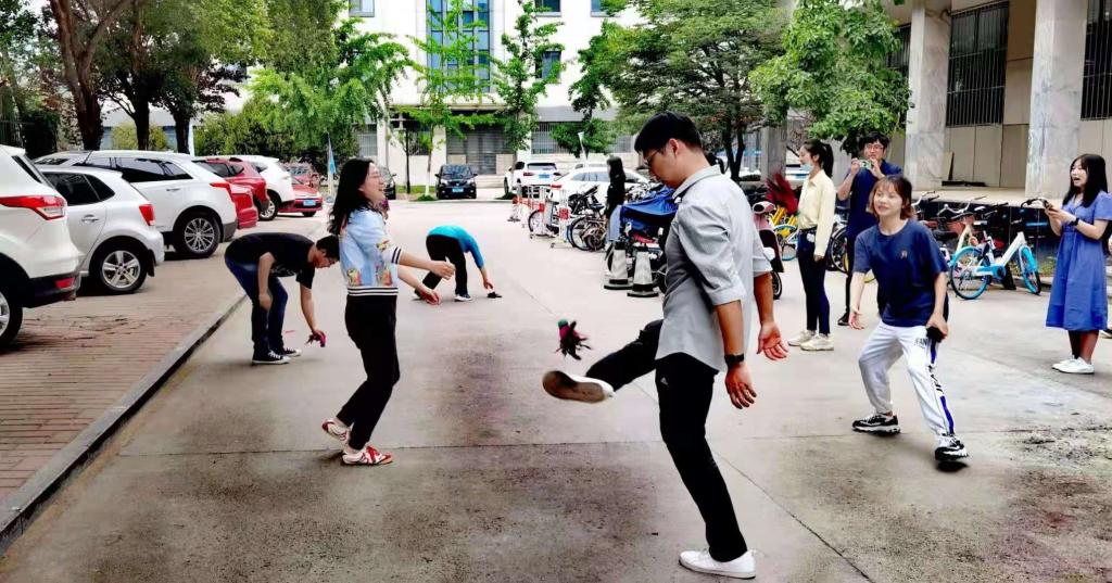 首先进行的是踢毽子比赛和跳绳比赛,在一分钟之内完成踢毽子和跳绳次数多的人胜利。比赛打破原有分组限制,让老师和学生可以同台比拼,增加了运动会的看点与趣味性。参加比赛的老师们都拼尽全力,展现了自己的体育才能。学生们也积极展现自己的练习成果,在赛场上发挥得漓淋尽致。两个项目的比拼十分激烈,参赛选手都不甘示弱,充分展现了九五之尊电子游戏网址大全全民运动的体育精神。之后,学院还进行了双人背夹气球的游戏,两人一组背靠背夹着气球跑过指定的距离,用时最短的一方获胜。参与游戏的每一组都配合默契,合作向前,现场气氛热烈,加油声和欢笑声不绝于耳。