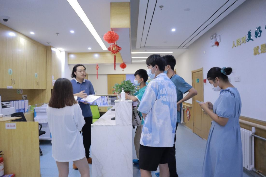 7月12日,九五之尊电子游戏网址大全“康养泉城”社会实践队伍抵达济南市泺河小区博康综合养老服务中心进行实地调研,以进一步了解国内社区养老新模式的探索成果与发展状况。参观服务中心后,团队成员和工作人员与负责人进行了深入访谈,对于社区养老模式有了更为深入的了解与体验。团队成员切实走进在这里接受康养服务的老人,观察老人的生活状态,与老人深入探讨交流,了解他们的生活体验与相关诉求。
