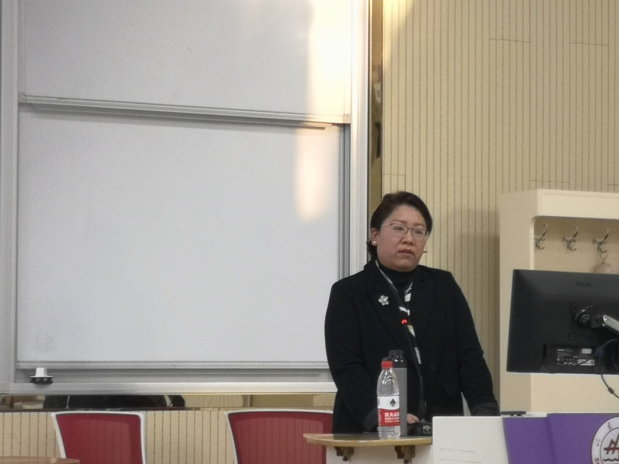 谢海艳在短片播放结束后向同学们分享介绍了节目录制现场的故事,通过情景剧演绎、组织现场志愿活动等各种类型的活动向大家展示了一个立体的人物形象和绿色事业的发展。