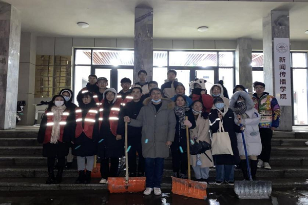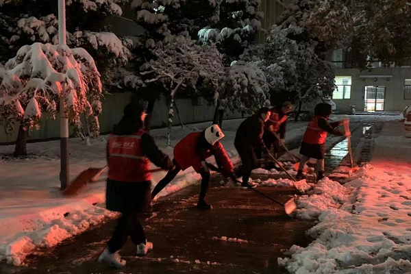 11月7日,受强冷空气影响,济南出现强降温、大风、大雨、大雪天气,校园在一天之内银装素裹,主要道路积雪覆盖。为保障通行安全和便利,确保环境整洁,新闻传播学院团委组织青年群体开展扫雪志愿服务工作。