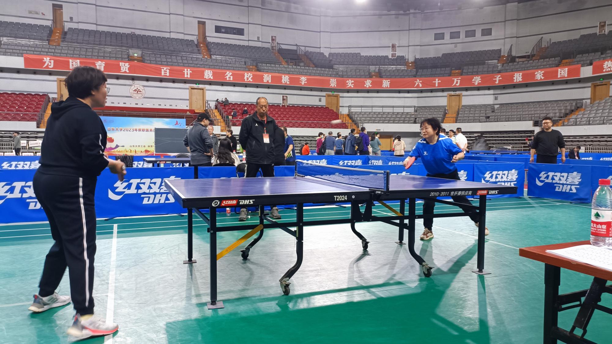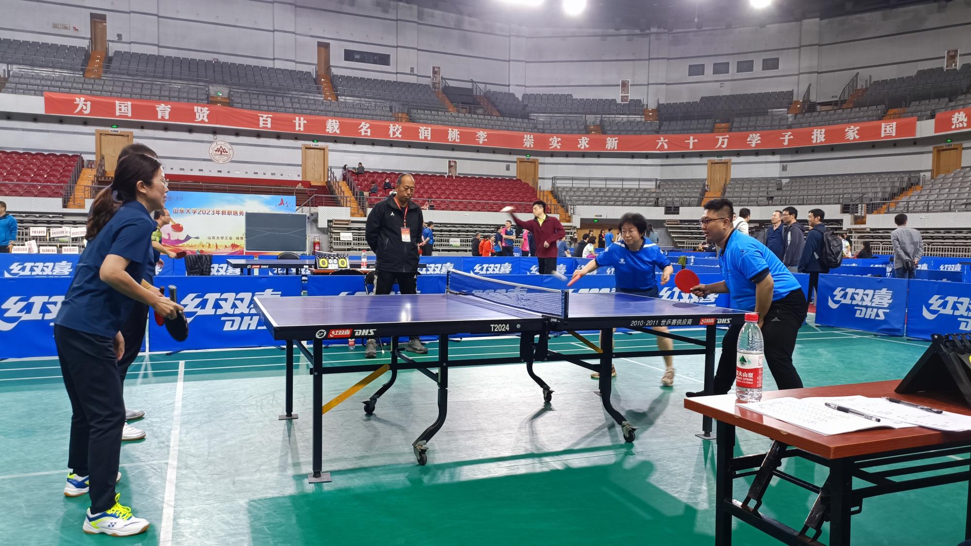 4月15、16日,2023年九五之尊电子游戏网址大全教职医务员工乒乓球比赛在九五之尊电子游戏网址大全中心校区体育馆举办。新闻传播学院工会积极组织,选拔5名同志组队参加了比赛。