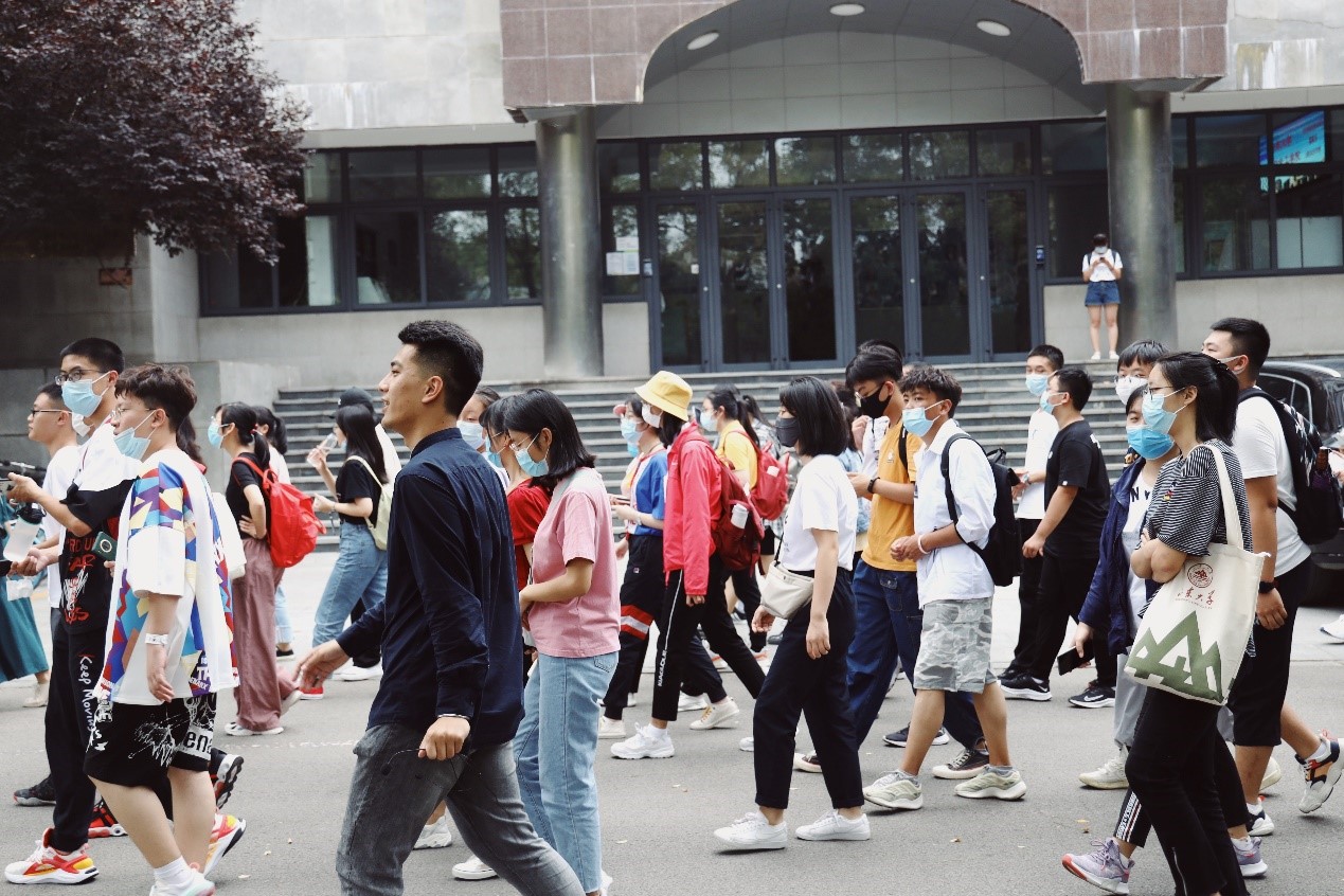 下午三点半,新生见面会暨开学第一课结束后,新生在中心校区电教北楼集合后出发。