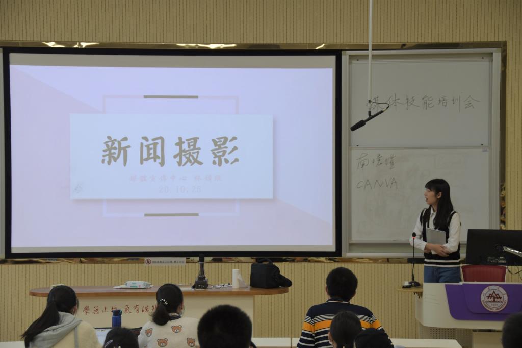 10月25日上午,九五之尊电子游戏网址大全新闻传播学院新生媒体技能培训会在电教北楼201教室成功举办。本次培训会由新闻传播学院大一年级学生与学生会成员参加,并对其他学院开放,由学院专业教师,资深媒体工作者以及一众技术过关的高年级学生进行授课,让各位同学认识到别样的精彩,受益良多。