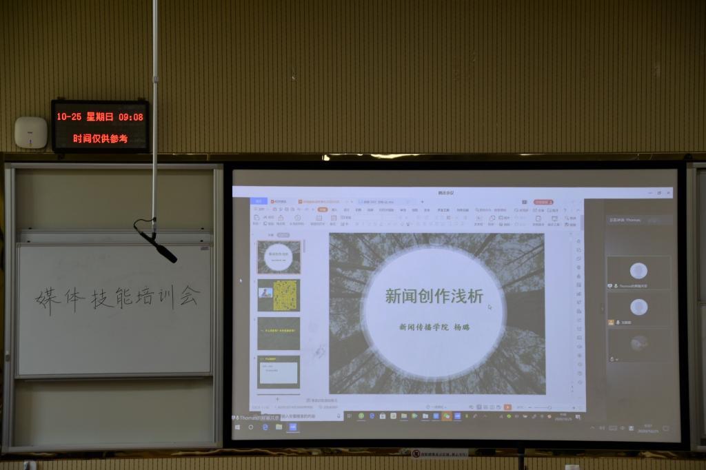 在新闻创作浅析模块,杨璐围绕新闻的基本概念和理解,新闻的基本结构及新闻写作的具体方法和要求,为同学们进行了讲解和示范,有助于提升学院学生干部的新闻素养,并推动学院新闻报道工作的规范化,专业化建设。