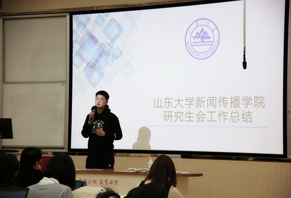总结会由新闻传播学院研究生会执行主席刘帆主持。会议开始,院研会办公室、就业联络部、学术部、宣传部、文体部负责部长与代表同学分别就各部门本学期工作进行了总结,汇报了部门在入学纳新、日常行政、就业实践、学术交流、宣传推广、文体活动等方面的主要工作及完成情况。每位代表发言结束后都对尽职负责的研会成员表达了感谢,并对部门来年的工作安排进行了规划。
