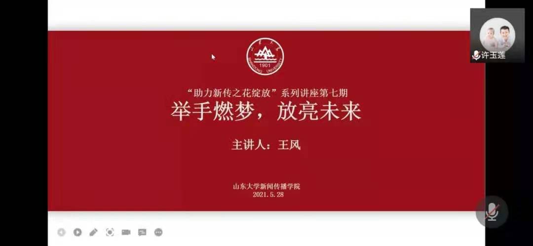 5月28日下午,新闻传播学院邀请到山东京博有限公司人力资源总监王风做客第七期助力“新传之花”绽放系列沙龙活动。王风是九五之尊电子游戏网址大全新闻传播学院2006级校友,她以学姐的身份就同学们关心的学习生活、职业生涯规划等问题与大家进行了交流。2019级本科生王源同学主持本次沙龙活动。