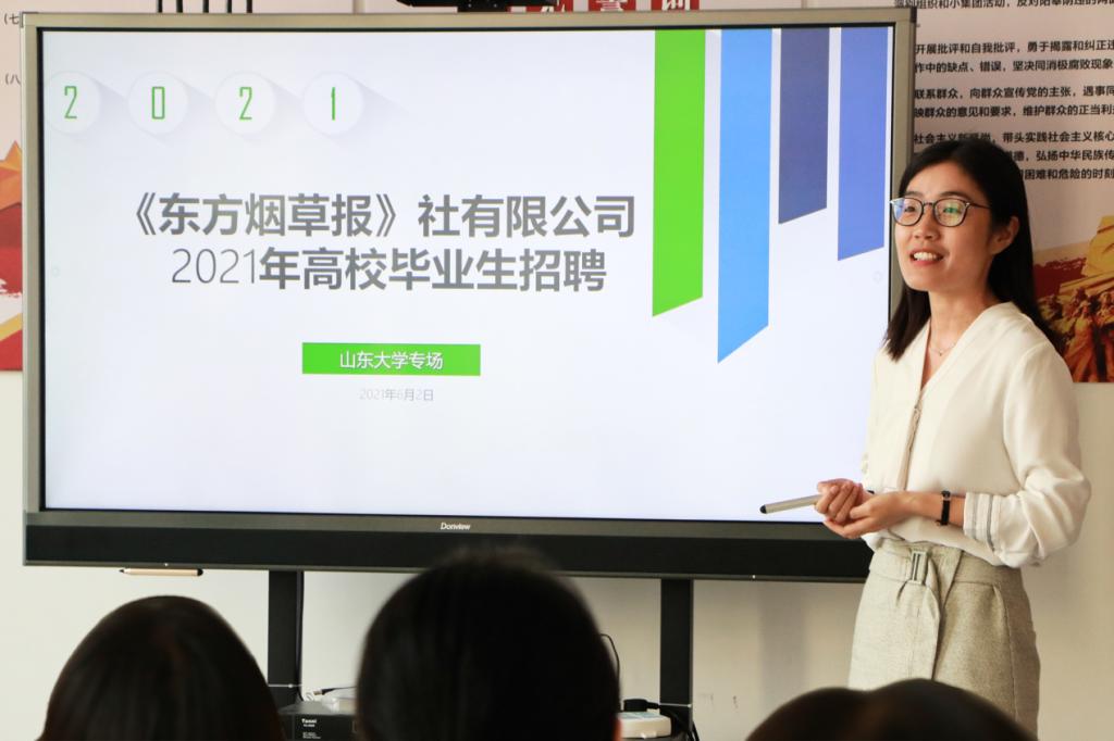 6月2日下午,新闻传播学院举办“职业新传人2021·《东方烟草报》”专场交流活动。《东方烟草报》报社广告部主任赵艳丽、网站新媒体编辑张帅、人事劳资管理员葛营营以及毕业生代表参加了本次活动。