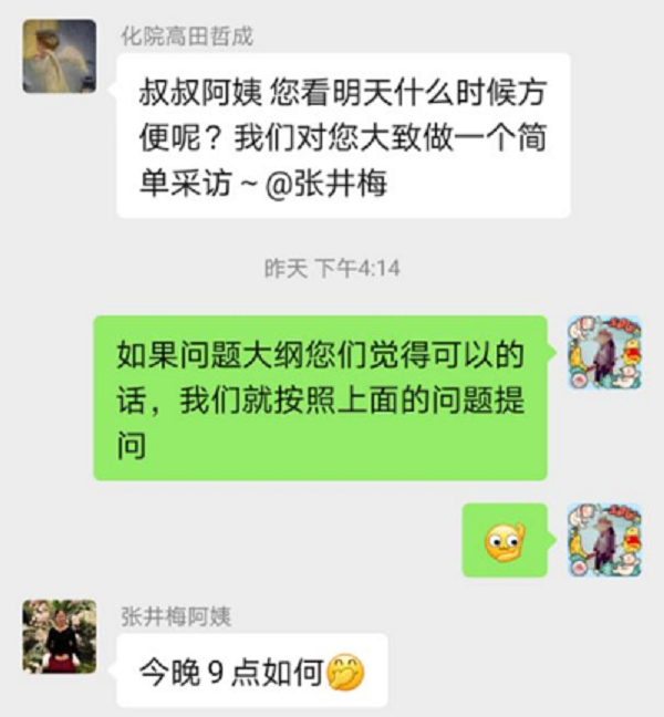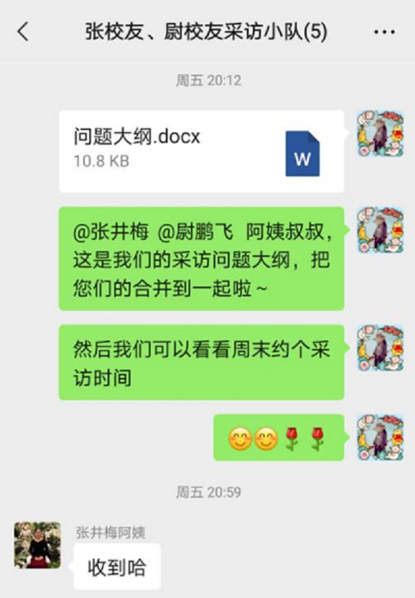 新闻传播学院寻访首都筑梦山大人队提前拟定了针对两位校友的采访问题大纲,并发给校友知悉以便简单做准备,因此采访进行的十分顺利。采访过程中,团队成员盛泽君、高田哲成、刘甜美与校友交流愉快、顺畅,气氛十分融洽。两位校友分别回答了个人成长历程、求学经历、职业发展、寄语四个方面的具体问题,观点清晰,有理有据,发人深省。