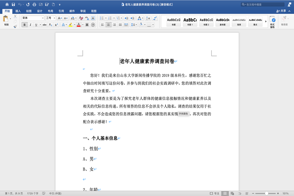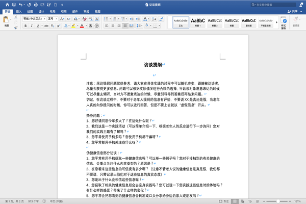 在问卷设计环节,团队成员翻阅了多篇论文,借鉴论文中成熟的问卷及量表,并结合《全国居民健康素养监测调查》力求问卷能够合理且有效地帮助成员们初步掌握有关老年人健康信息获取等问题的基本情况。问卷设计过程也得到了团队指导老师展宁的支持,展宁老师对成员们设计的问卷初稿提出了宝贵的意见和建议,对问卷的整体完善提供了很大的帮助。